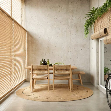 Los elementos estructurales vistos, como vigas y muros originales, aportan carácter y autenticidad. El diseño de materiales combina un suelo cerámico imitación cemento, que aporta sobriedad y continuidad, con madera en los planos verticales, equilibrando la estética con un toque cálido.