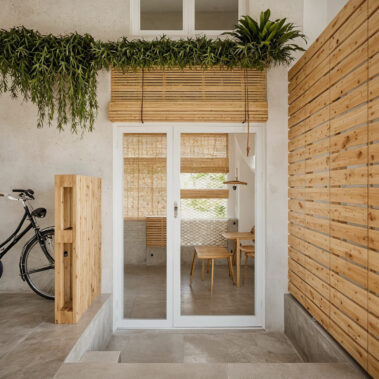 El acceso a la vivienda se realiza a través de un patio longitudinal que recorre la fachada, funcionando como una transición entre el exterior y el interior. Este espacio no solo aporta iluminación natural, sino que también actúa como un filtro visual y una extensión del área social.