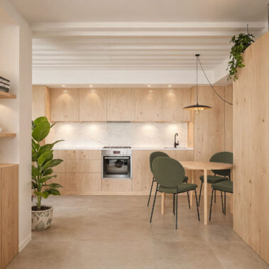 Este proyecto transforma dos viviendas tipo loft en espacios modernos y funcionales, donde la búsqueda de luz y la fluidez espacial han sido clave en el diseño. Se apuesta por espacios abiertos, potenciando la amplitud y la continuidad visual.